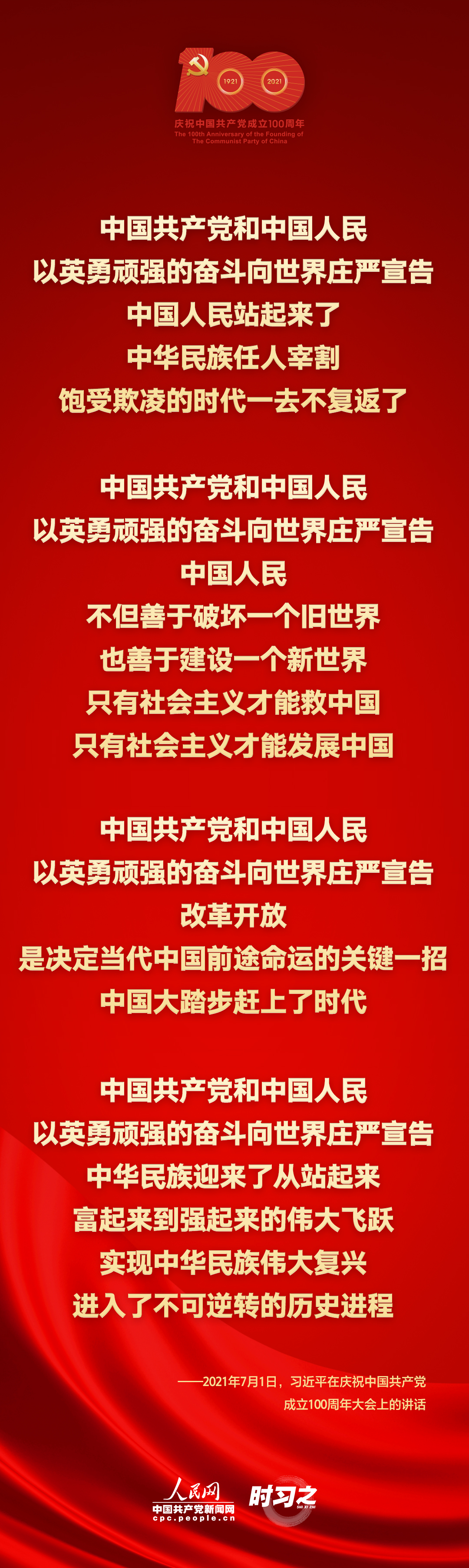 习近平在庆祝中国共产党成立一百周年大会上的讲话金句