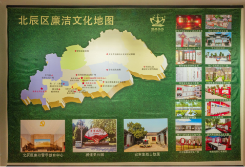 北辰区立足本地蕴含廉洁元素的名人故居、活动场馆、自然景观等,推进“一中心两基地”(即北辰区廉政警示教育中心、杨连弟公园廉洁文化教育基地、安幸生烈士故居廉洁文化教育基地)和“一镇(街)一品一特色”廉洁文化阵地建设,绘制“1+2+N”北辰廉洁文化宣传地图,为党员干部群众开展廉洁文化活动提供平台载体。同时,积极发挥村(居)纪检监察工作联络站作用,在274个纪检监察工作联络站设置廉洁文化“宣传角”,配备廉洁教育书籍、报刊及党纪法规宣传册等供群众取阅,让廉洁文化宣传阵地“廉珠成串”形成矩阵。