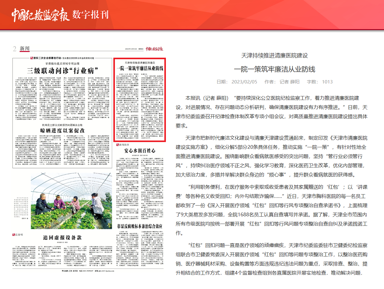 天津持续推进清廉医院建设 一院一策筑牢廉洁从业防线