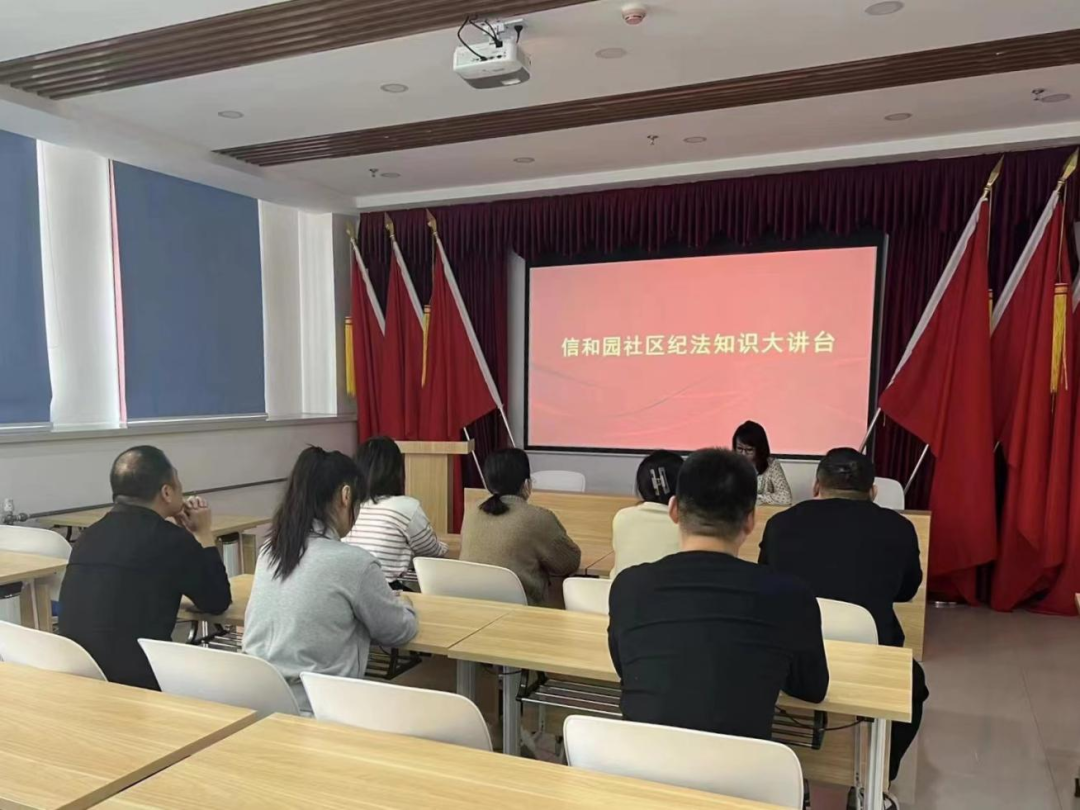 津南区双桥河镇信和园社区纪检监察工作联络站定期向社区工作人员宣传党的政策方针、普及纪法知识。(津南区纪委监委供图 田姝 摄)