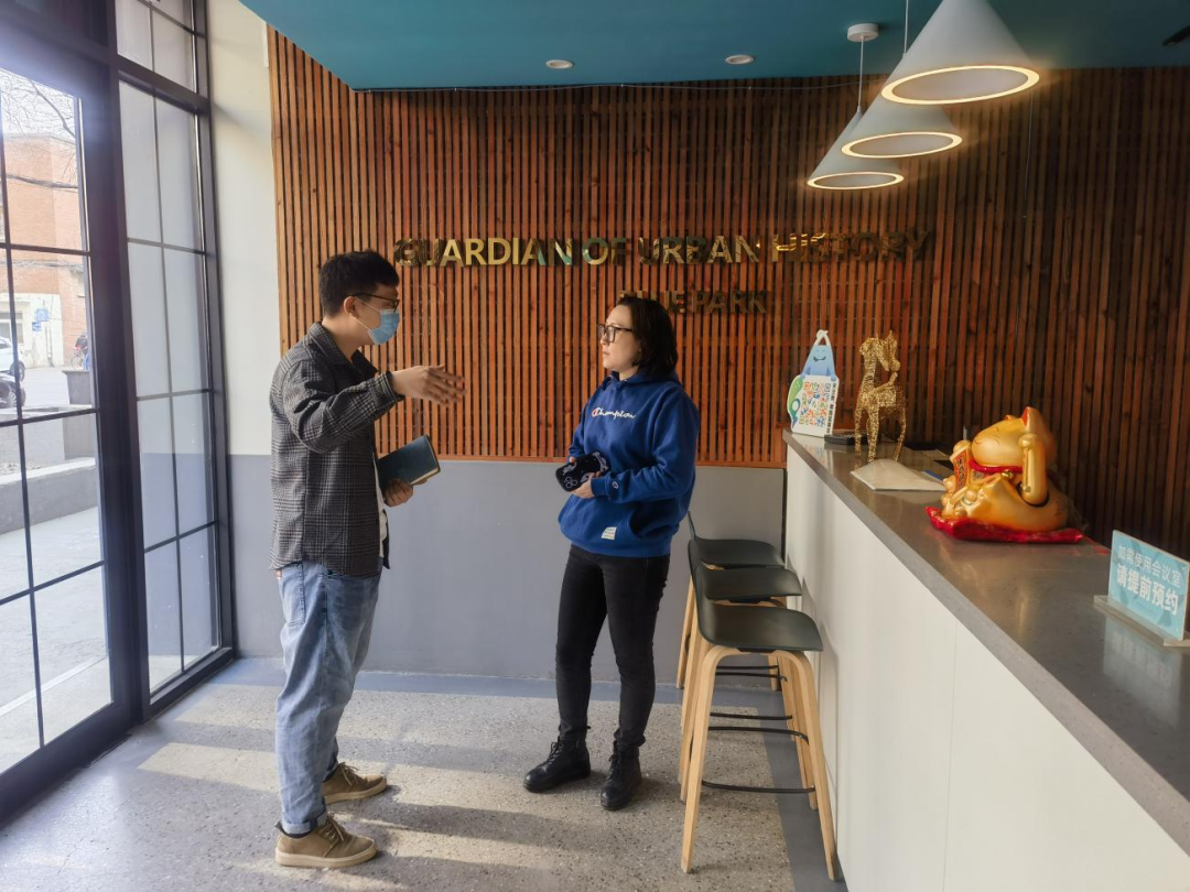 河东区大直沽街道宫前园社区纪检监察工作联络站监督员走访辖区企业,了解营商环境、惠企政策落实等方面情况。(河东区纪委监委供图 马琳 摄)