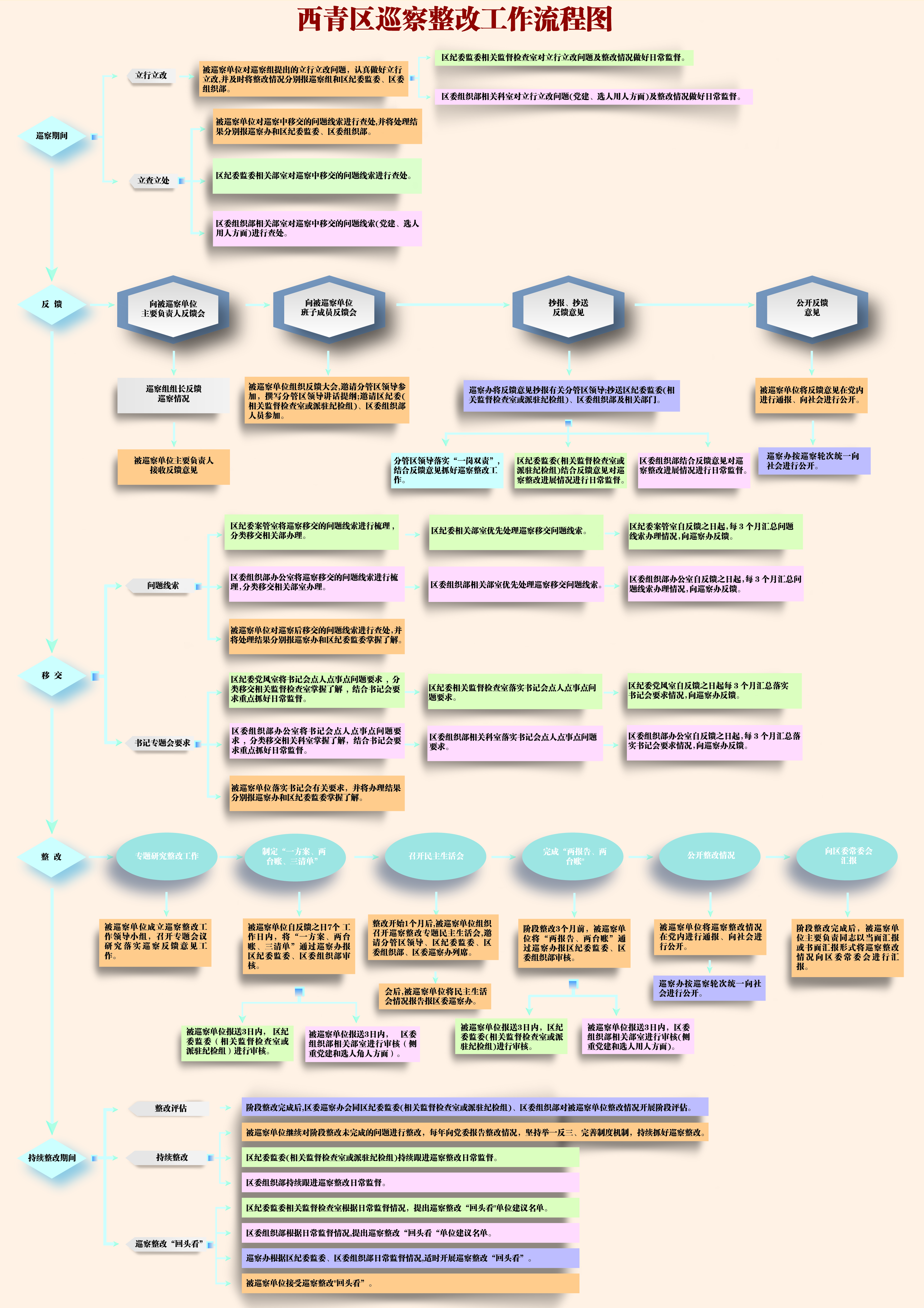 “制作整改流程图和提示单,实质上是对整个巡察整改工作的简化、实化和规范化,是我们边探索、边实践、边总结的创新招法。既提高了巡察整改质效,又进一步压实了整改责任,各责任主体规范履职,不缺位、不错位,形成了有序衔接、互为补充、协调一致的整改链条。”西青区委巡察办主要负责人介绍道。