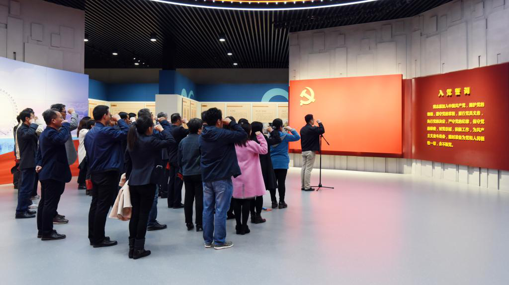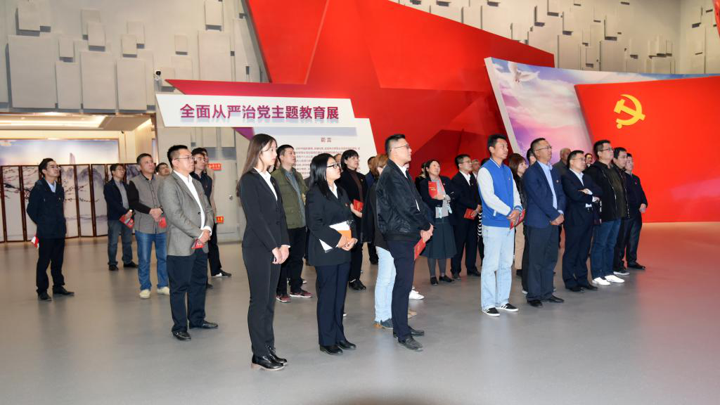 在近2个小时的参观过程中,观展人员完整观看了全面从严治党主题教育展的序厅、政治立魂篇、严管立威篇、纪法立行篇、警示立戒篇、党性立心篇、文化立信篇、尾厅和互动区等九个展厅。展厅内,观展人员仔细聆听讲解,积极参与互动答题,认真观看陈列展品、典型案例,亲笔签名承诺,自觉接受教育,深刻感受了党的十八大以来,以习近平同志为核心的党中央以永远在路上的坚韧和执着推进全面从严治党取得的卓越成效。观展结束前,全体党员面向党旗庄严举起右拳,重温入党誓词,追溯初心使命。