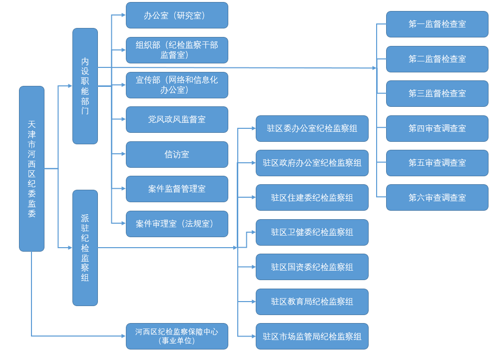 区纪委监委内设职能部门为:办公室(研究室)、组织部(纪检监察干部监督室)、宣传部(网络安全和信息化办公室)、党风政风监督室、信访室、案件监督管理室、第一至第三监督检查室、第四至第六审查调查室、案件审理室(法规室)。